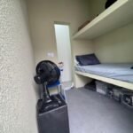 Martins ocupa uma cela individual de 6 m² com banheiro, beliche e itens disponibilizados pela família, como ventilador e TV. Segundo o promotor de Justiça Antônio Juliano Albanez, o espaço está “perfeitamente adequado” e o custodiado relatou estar sendo bem atendido, sem queixas sobre alimentação ou saúde. A presidente da OAB de Ponta Grossa, Mariantonieta Pailo Ferraz, reforçou que o local garante a integridade física do preso.